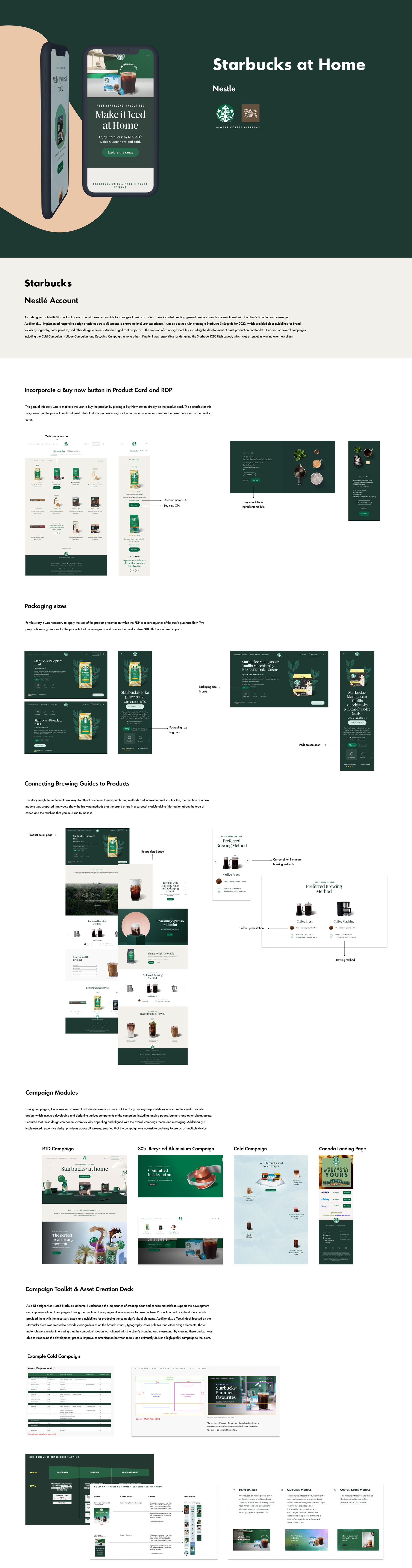 One of my biggest and most important projects I have participated in. I was part of the design team that was based in Germany within the company (Publicis) accompanied by a Creative Director and a couple of Experience Designers from whom I learned a lot. Our team worked together with other advertising agencies such as Media Monks Spain to jointly create advertising campaigns for various seasonal Starbucks products, for this we would do documentations all the time explaining the processes and materials that others needed to make our designs a reality. On the other hand, there was always direct contact with Developers as well as Product Managers.